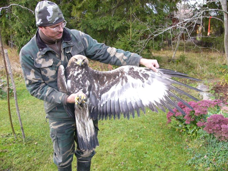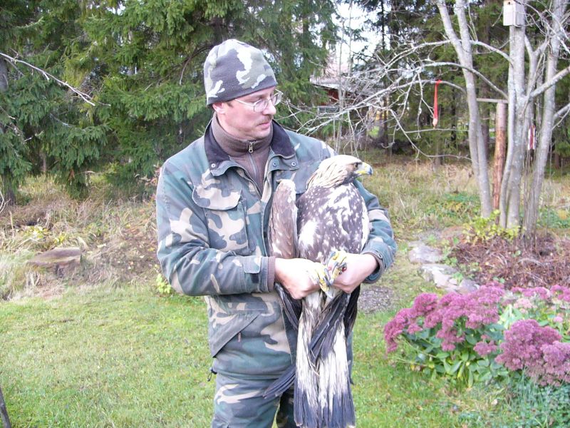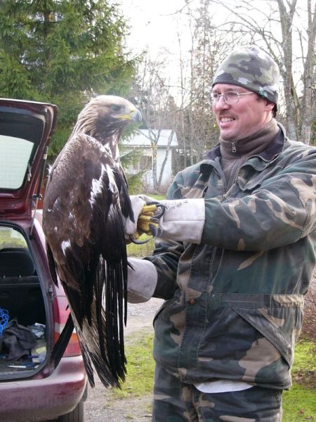 Ari Rantamäki ja nuori (1kv) maakotka naaras.